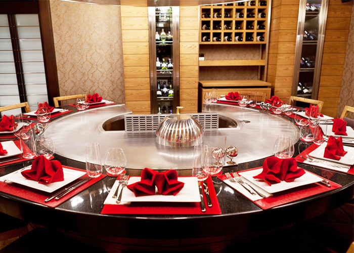 12 सीट R1000 सर्कल गैस हिबाची ग्रिल टेबल थकावट और शुद्धिकरण प्रणाली के साथ